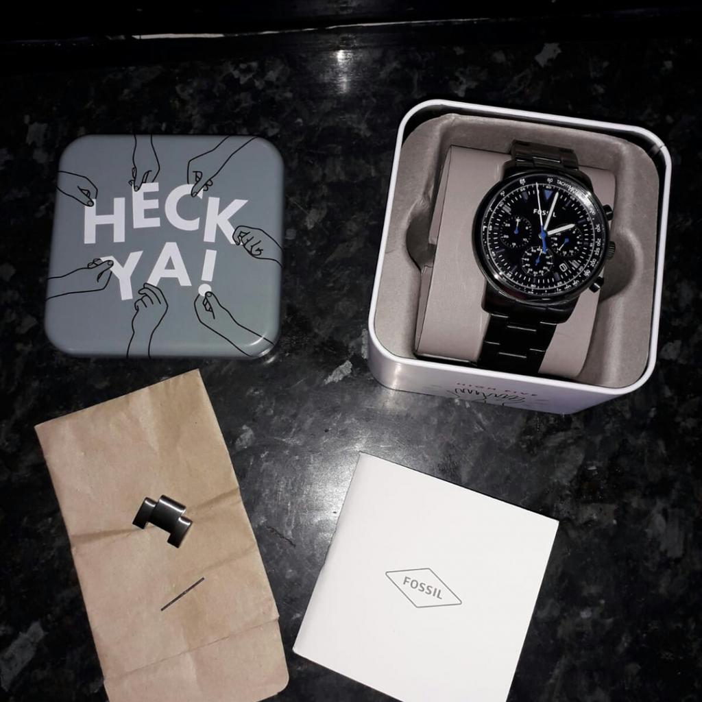 Stay stylish and punctual with the Fossil Goodwin Chrono Analog Watch for men. This sleek timepiece features a black dial and grey steel strap, making it an effortlessly versatile accessory. With its reliable chronograph movements and durable design, this watch is a functional and fashionable choice for any man.