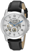 Fossil Grant Skeleton White Dial Black Leather Strap Watch for Men - ME3053