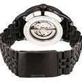 Black PVD stainless steel case and bracelet. Fixed black PVD bezel. Black (skeletal window) dial with silver-tone hands and index hour markers. Roman numerals mark the 3, 6, 9 and 12 o'clock positions. minute markers around the outer rim. Dial Type: Analog. Luminescent markers.