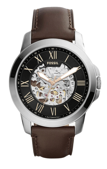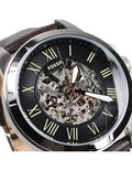 Fossil Grant Automatic Skeleton Black Dial Brown Leather Strap Watch for Men - ME3100