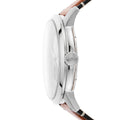 • Stainless steel case with blue dial; genuine luggage brown leather band with adjustable buckle closure; interchangeable with all 24mm Fossil watch straps