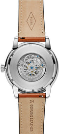 Fossil Townsman Automatic Skeleton Blue Dial Brown Leather Strap Watch for Men - ME3154
