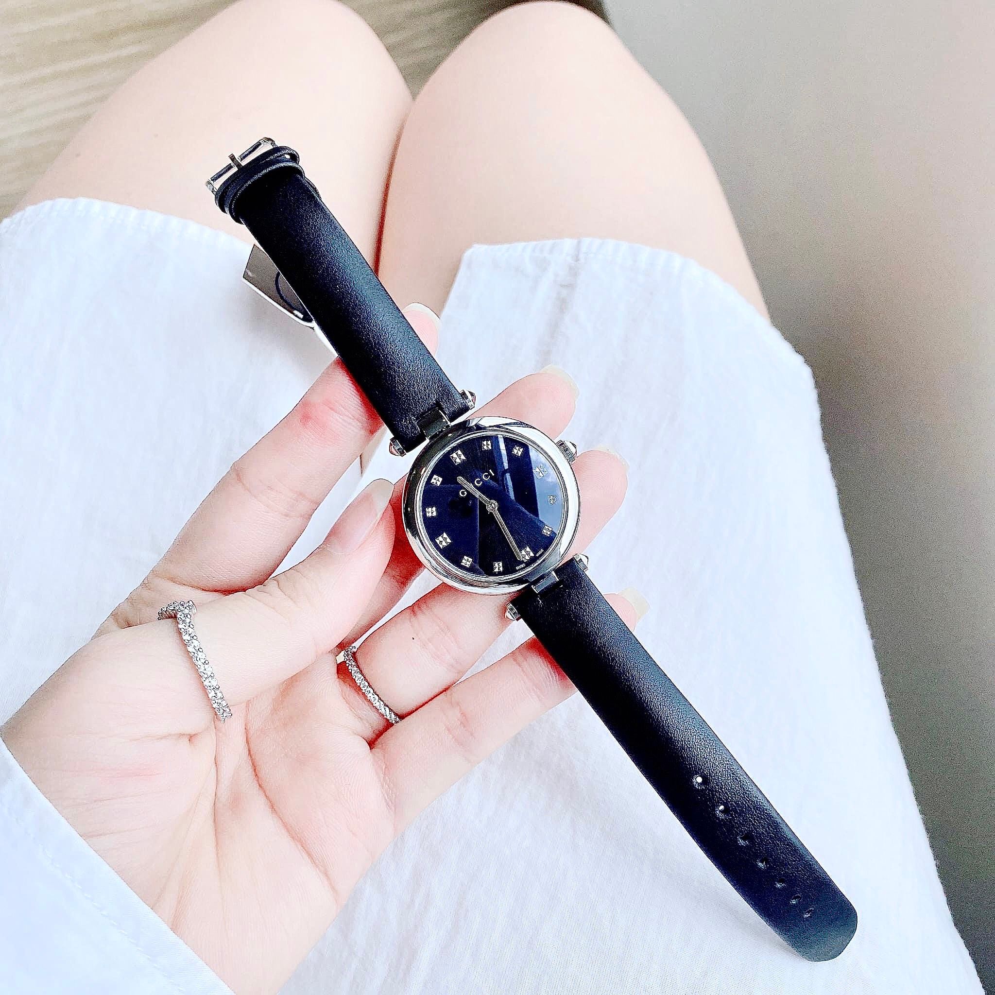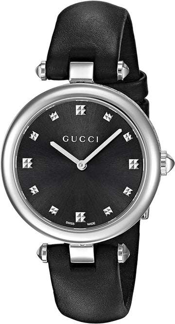 Gucci Diamantissima Diamonds Black Dial Black Leather Strap Watch For Women - YA141403