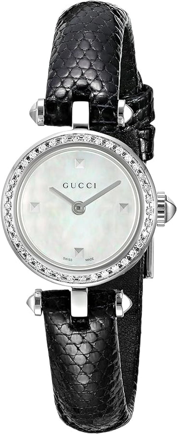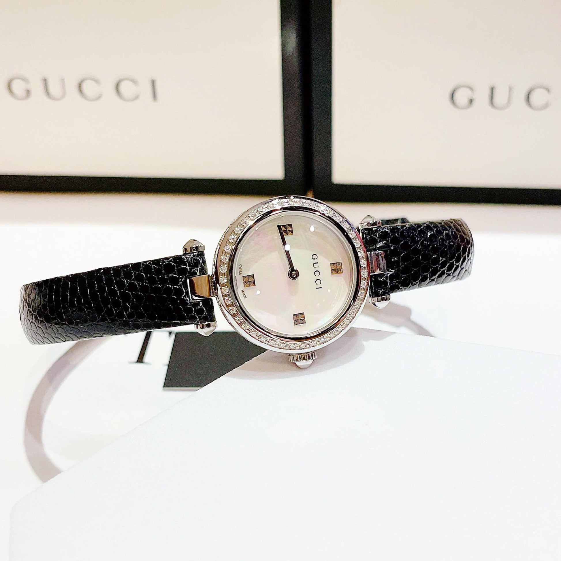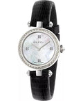 Gucci Diamantissima Diamonds Mother of Pearl Dial Black Leather Strap Watch For Women - YA141511