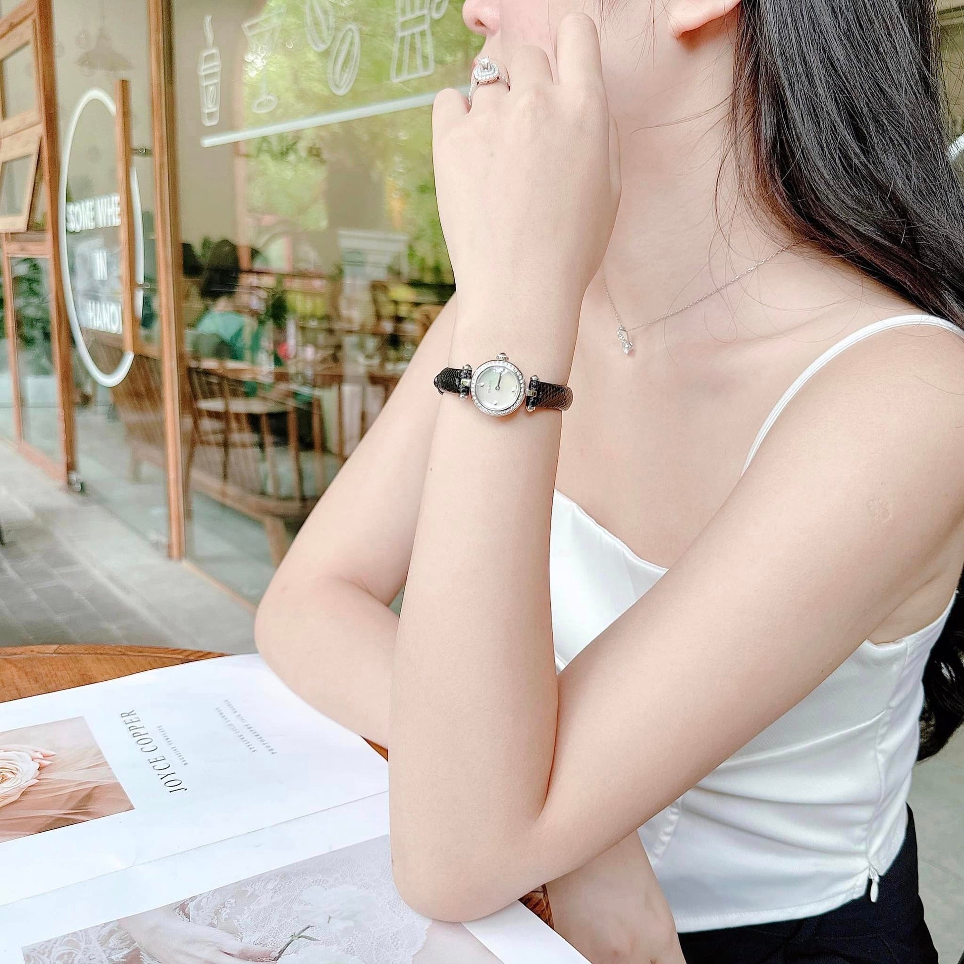 • Black lizard skin leather strap finished with a buckle clasp to ensure security on the wrist.