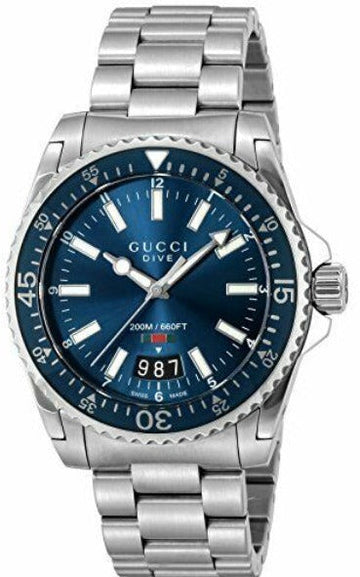 Gucci Dive Quartz Blue Dial Silver Steel Strap Watch For Men - YA136311Gucci Dive Quartz Blue Dial Silver Steel Strap Watch For Men - YA136311