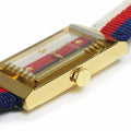 Gucci G-Frame Mother of Pearl Dial White Blue Red Nylon Strap Watch For Women - YA147405