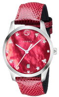 Gucci G-Timeless Mother of Pearl Red Dial Red Leather Strap Watch For Women - YA1264041