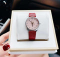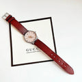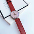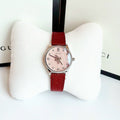 Gucci G Timeless Quartz Diamonds Pink Dial Red Leather Strap Watch For Women - YA1265017