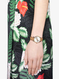 • Yellow gold PVD case, silver sunbrushed dial with bee as seconds hand, taupe lambskin strap