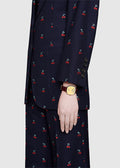 A clean, streamlined design that fits snugly around the wrist, the Grip watch takes its inspiration from the world of skateboarding, its name recalling the way the riders sneakers stick to the grip tape on a skateboard. The yellow gold PVD face has three windows to display the hour, minute and date, completed with an alligator strap. Designed with a special mechanism that allows the strap to be removed, this watch's strap is interchangeable and can be replaced with coordinating 35mm Grip straps.