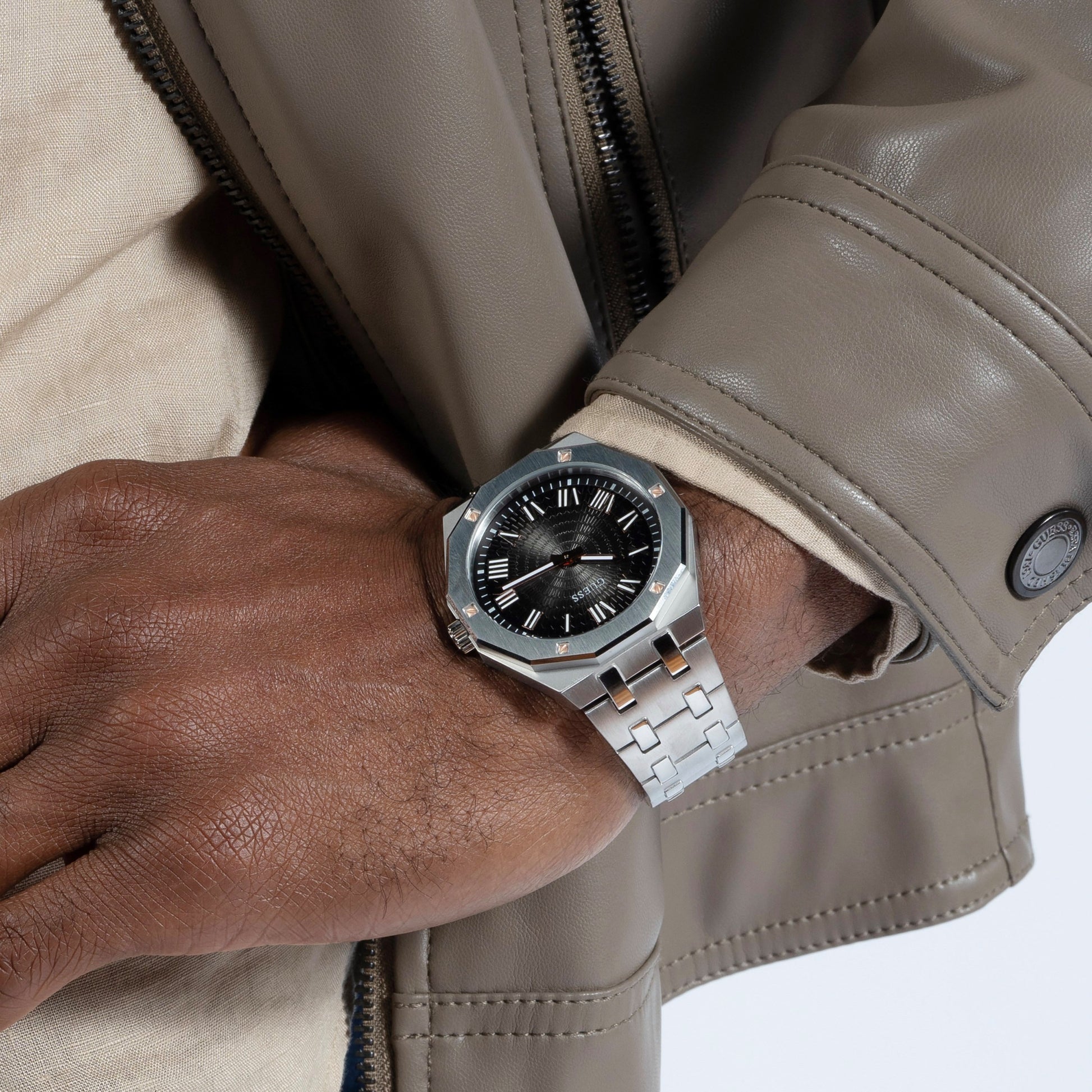 Guess Asset Quartz Black Dial Silver Steel Strap Watch For Men - GW0575G1Guess Asset Quartz Black Dial Silver Steel Strap Watch For Men - GW0575G1