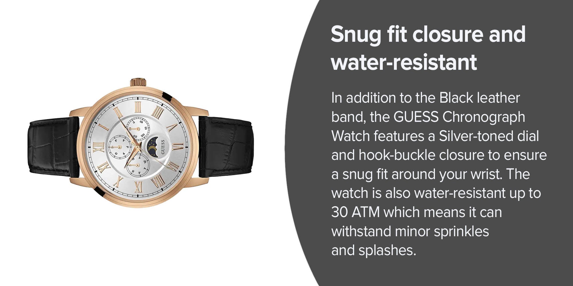 The Guess W0870G2 watch is a model designed for men who are looking for a watch with an interesting and classic design. His driving force is a precise quartz mechanism. The steel envelope was kept in pink gold and hung on a black leather strap. Bright, the dial is equipped with an extensive date stamp and a shield indicating the moon phases.