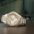 The Guess Frontier W0799G4 watch is coated in white crystals and coloured in two-tone gold and silver. This glamourous timepiece will make a strong statement anytime it's worn, also featuring a multifunction movement. These extra subdials make timekeeping as convenient as possible, and complete the luxury look.