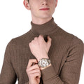Guess Frontier W0799G4 is a fashion watch for men that will look great with both casual and elegant outfits. It is driven by a reliable and widely used quartz movement powered by a battery. A silver and gold bracelet made of steel is easy to use and perfectly matches other elements of the watch. The silver dial is covered by a mineral crystal, which is renowned for its high resistance to shocks and scratches that are caused during everyday use. The watch with 100 meters of water resistance means you don't have to take your watch off when swimming or freediving.