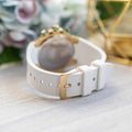 A must-have this season, our White Iridescent Fusion Silicone Watch will become your fave new accessory. Crafted from a stainless steel material, this watch features a gold and iridescent two-tone case, white croco pattern strap, strap buckle closure, white dial, GUESS logo detailing, and a crystal case bezel.
