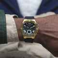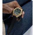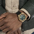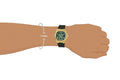 Amaze everyone around you by wearing this men's analog watch from Guess. The green square dial is protected by a mineral glass. It features chronograph and a crown for time adjustment. The silicon strap comes in a black hue that further elevates the look of the timekeeper. Besides, it is completed with a buckle clasp to ensure a secure fit on the wrist.