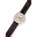 It is set on a stainless steel case and brown leather strap. Product Details: Dial Color: Cream Dial Window Material: Mineral Display Type: Analog Case Material: Stainless steel Case Dimension: 45 mm Band Material: Leather Band Width: 22 mm Clasp Type: Tang buckle Movement: Quartz Water Resistant: 50 M.