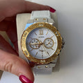 Guess Women's Watch White stainless steel caseback. White dial. Quartz movement. 50M Water Resistant