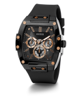 Guess Phoenix Multifunction Black Dial Black Silicone Strap Watch For Men - GW0203G8