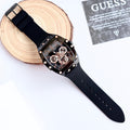 This modern watch from Guess is equipped with a black multi-function dial, scratch-resistant mineral crystal, sleek leather strap, and water resistance up to 50 meters. Perfect for any occasion, this stylish timepiece is sure to become a staple accessory.