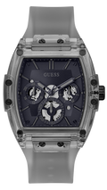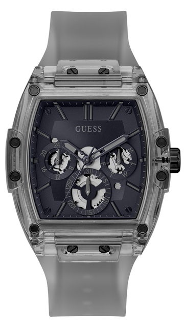 Elevate your style with the Guess Phoenix Multifunction Black Dial Grey Silicone Strap Watch! This sleek timepiece is perfect for any modern man, featuring a multifunction black dial and comfortable grey silicone strap. Make a statement with this stylish and functional watch that will elevate any outfit!