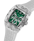Guess Phoenix Quartz Green Dial Transparent Silicone Strap Watch For Men - GW0499G8
