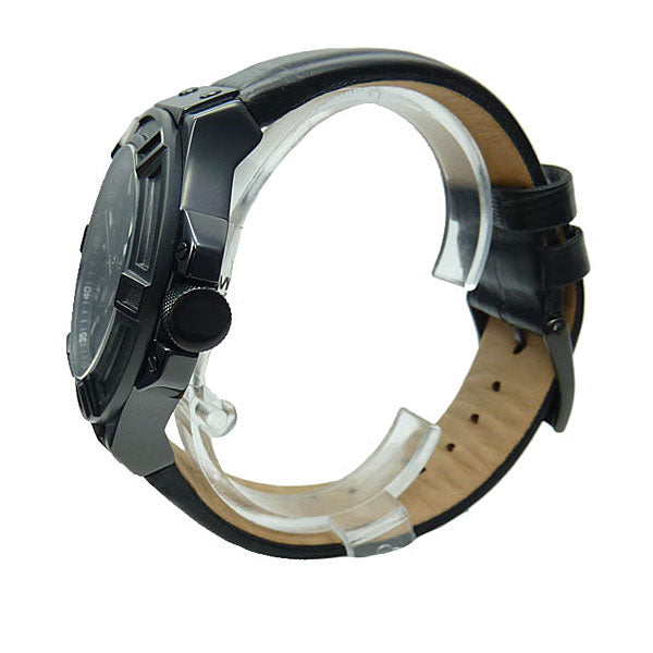 Guess Rigor Black Dial Leather Strap Men's Watch W0040G1 comes in black Ion-plated steel and leather, featuring a date function, Japanese Quartz movement and high-visibility baton and numeral hour markers.