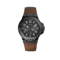 Guess Rigor Analog Black Dial Brown Leather Strap Watch For Men - W0040G8