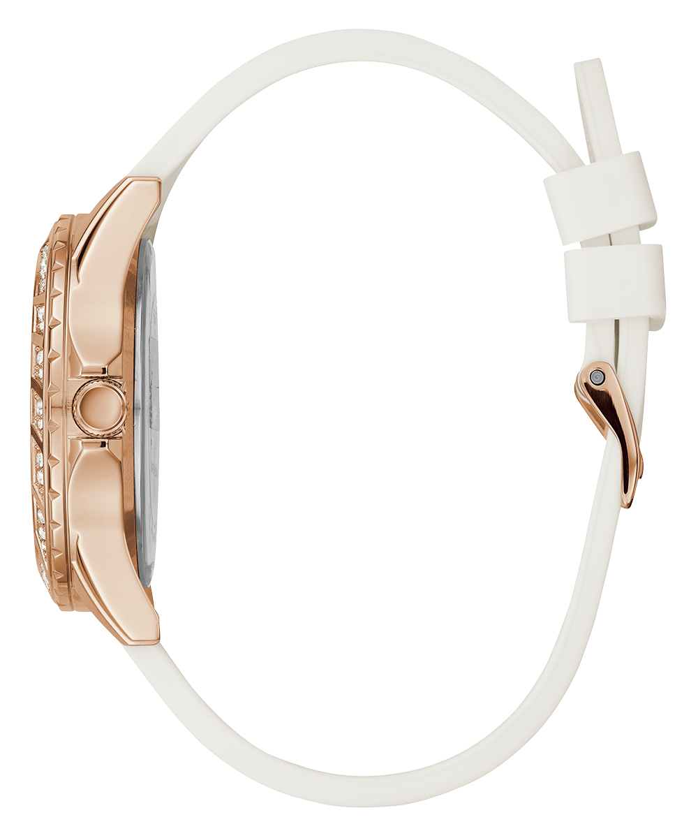 Guess Swirl Quartz Silver Dial White Rubber Strap Watch For Women - W1096l2