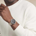 This Hugo Boss watch has a rose gold stainless steel case 42mm in diameter and is fitted with a metal strap. Inside the case lies a movement and the watch features a mineral crystal. The water resistancy of this watch is 5ATM.