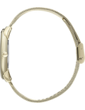 This Hugo Boss watch has a gold coated stainless steel case 40mm in diameter and is fitted with a metal strap. Inside the case lies a movement and the watch features a mineral crystal. Butterfly clasp with push buttons, water resistance upto 30 meters.