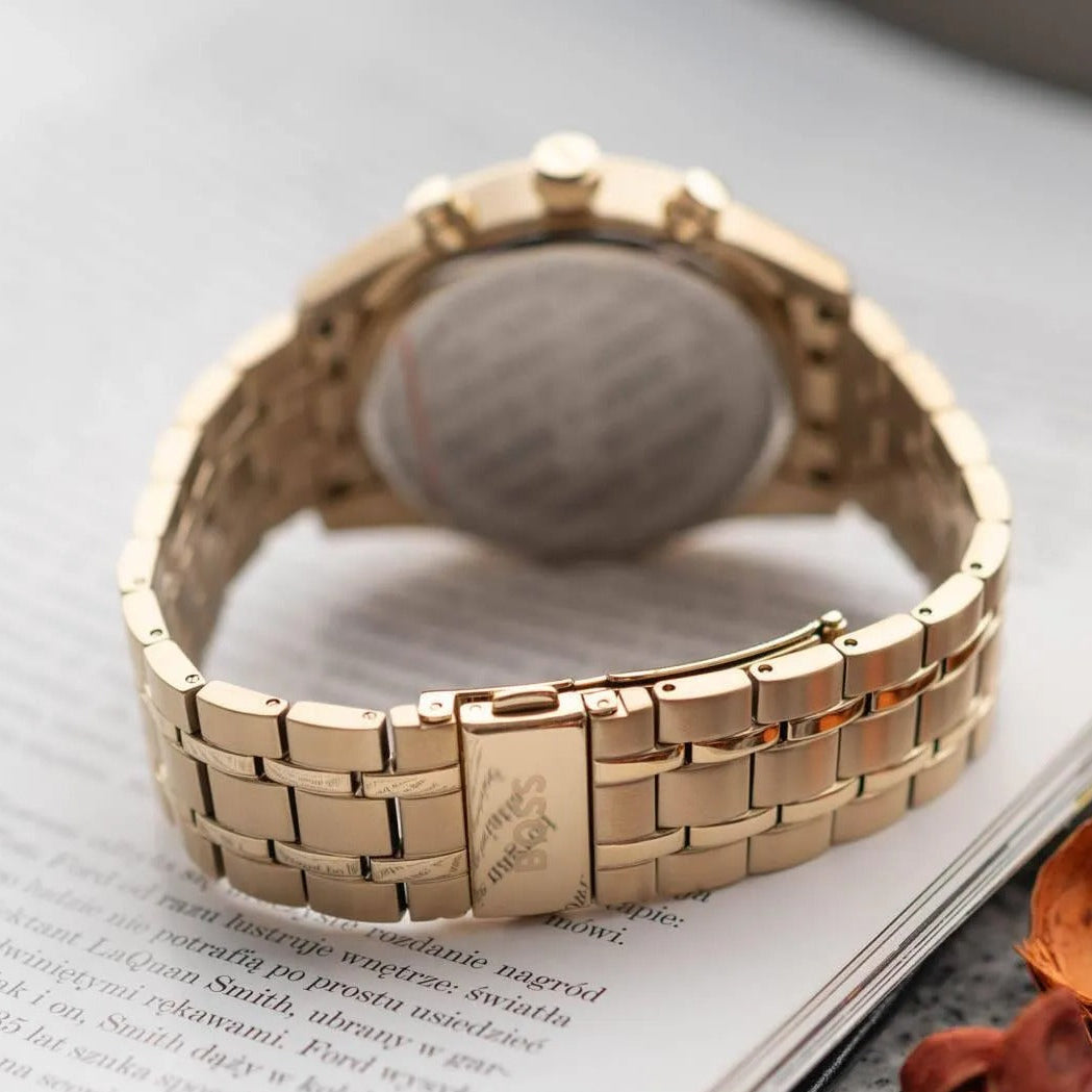 Hugo Boss Skytraveller Chronograph Black Dial Gold Steel Strap Watch for Men - 1514152Hugo Boss Skytraveller Chronograph Black Dial Gold Steel Strap Watch for Men - 1514152