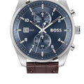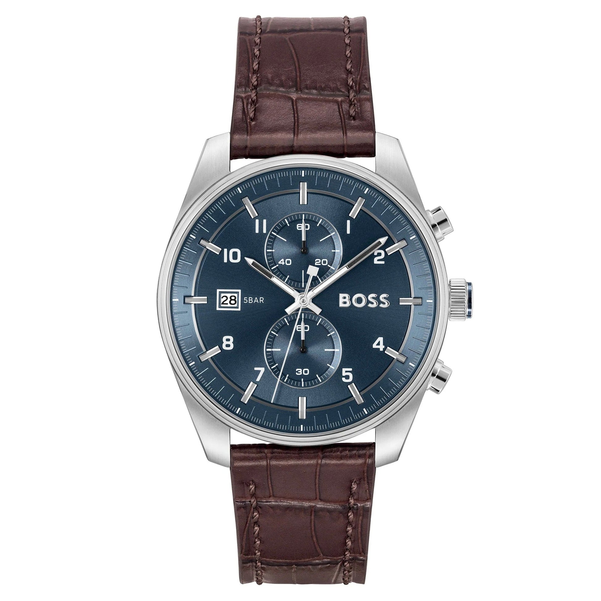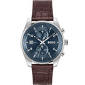 Hugo Boss Skytraveller Chronograph Blue Dial Brown Leather Strap Watch for Men - 1514194