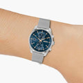 Hugo Boss Skytraveller Chronograph Blue Dial Silver Mesh Strap Watch for Men - 1514149