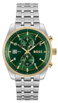 Hugo Boss Skytraveller Chronograph Green Dial Silver Steel Strap Watch for Men - 1514195