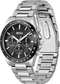 Hugo Boss Strike Chronograph Black Dial Silver Steel Strap Watch for Men - 1514290