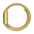A bold fusion of color and elegance, this Just Cavalli Glam Chic wristwatch features a green dial framed by a yellow gold-plated stainless steel case. The watch is complete with a striking coil bracelet.