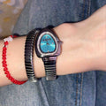 The Just Cavalli Signature Snake Quartz Ladies Watch (model JC1L249M0015) features a striking turquoise dial that enhances its sophisticated design. Powered by precise quartz movement, this timepiece offers reliable accuracy and low maintenance. Its elegant signature snake motif adds a distinctive touch, making it a refined accessory for any occasion. Crafted for women who appreciate both style and functionality, this watch combines fashion-forward aesthetics with dependable performance.