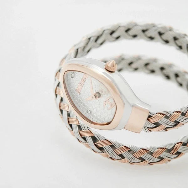 Just Cavalli Novara Silver Dial Two Tone Steel Strap Watch for Women - JC1L264M0075