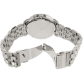 Stainless steel case with a stainless steel bracelet. Fixed bezel. White dial with silver-tone hands and index/ Arabic numeral hour markers. Minute markers around the outer rim. Dial Type: Analog. Date and day display at the 3 o'clock position. Quartz movement. Scratch resistant mineral crystal. Pull / push crown. Solid case back. Case diameter: 38 mm. Case thickness: 8 mm. Round case shape. Band width: 18 mm. Band length: 8 inches. Deployment with push button clasp. Water resistant at 50 meters / 165 feet. Functions: date, day, hour, minute, second. Dress watch style. Marc by Marc Jacobs Fergus White Dial Stainless Steel Ladies Watch MBM8646.