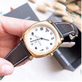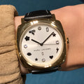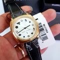 Quartz womens wristwatch MJ1564 with stainless steel case, with diameter 34 mm, white dial and black calfskin band.