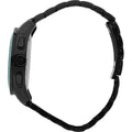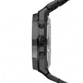44mm diameter men’s watch with QUARTZ precision chronograph mechanism. It has a black dial with blue indicators and details. Its case is black made of stainless steel, with a special hardened mineral crystal. It has a black PVD bracelet and a safety clasp. It is waterproof (10 ATMs).