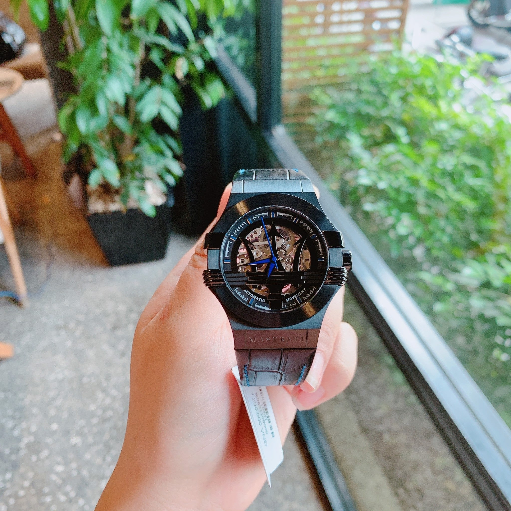Maserati Potenza Automatic Black Dial Black Leather Strap Watch For Men - R8821108009Maserati Potenza Automatic Black Dial Black Leather Strap Watch For Men - R8821108009