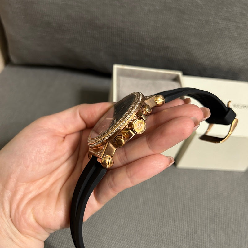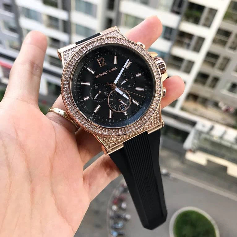 Michael Kors Dylan Chronograph Black Dial Black Rubber Strap Watch For Women - MK8557Michael Kors Dylan Chronograph Black Dial Black Rubber Strap Watch For Women - MK8557