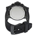 Quartz movement. Scratch resistant mineral crystal. Solid case back. Case diameter: 48 mm. Case thickness: 13.5 mm. Round case shape. Band width: 22 mm. Band length: 8 inches. Tang clasp. Water resistant at 100 meters / 330 feet. Casual watch style. Michael Kors Dylan Chronograph Black Dial Black Silicone Strap Gents Watch MK8383.