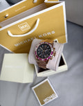 Michael Kors Everest Chronograph Black Dial Rose Gold Steel Strap Watch for Women - MK6972Michael Kors Everest Chronograph Black Dial Rose Gold Steel Strap Watch for Women - MK6972