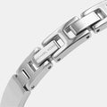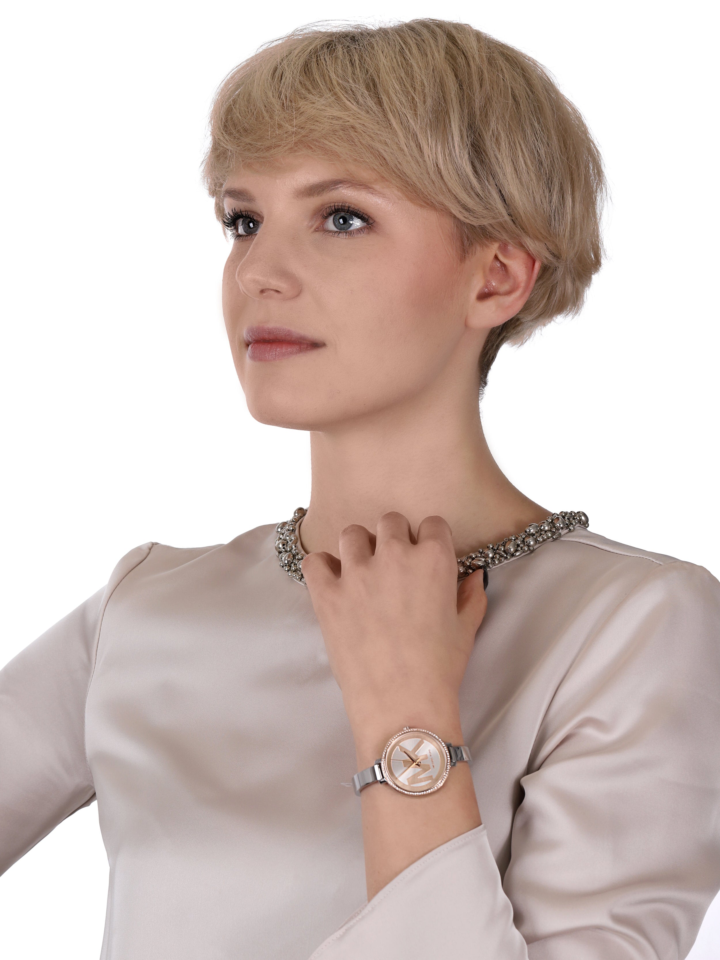 Wear the ultimate expression of Michael Kors style and design evolution on your wrist with the Jaryn series watch. This analog watch features a rose-gold-silver sunray dial with its signature MK logo embossed, three-hand movement and silver-tone stainless steel half-bangle with glitz studded bezel to finish the look. Also, this stainless steel watch brings both functionality and style to the table.
