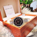 Wear it as a chic and functional finish to any look. This 33mm watch features a black dial in a stainless steel case with three hand movement and a three link stainless steel strap.
