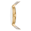 Case size: 40MM. Movement: Three hands. Strap material: PVC. Strap color: White. Case water resistance: 3 ATM. Case material: Alloy. Case color: Gold. Dial color: White. Strap width: 18MM. Closure: Single Prong strap buckle. Inner strap circumference: 175 +/- 5MM. Battery type: SR621SW